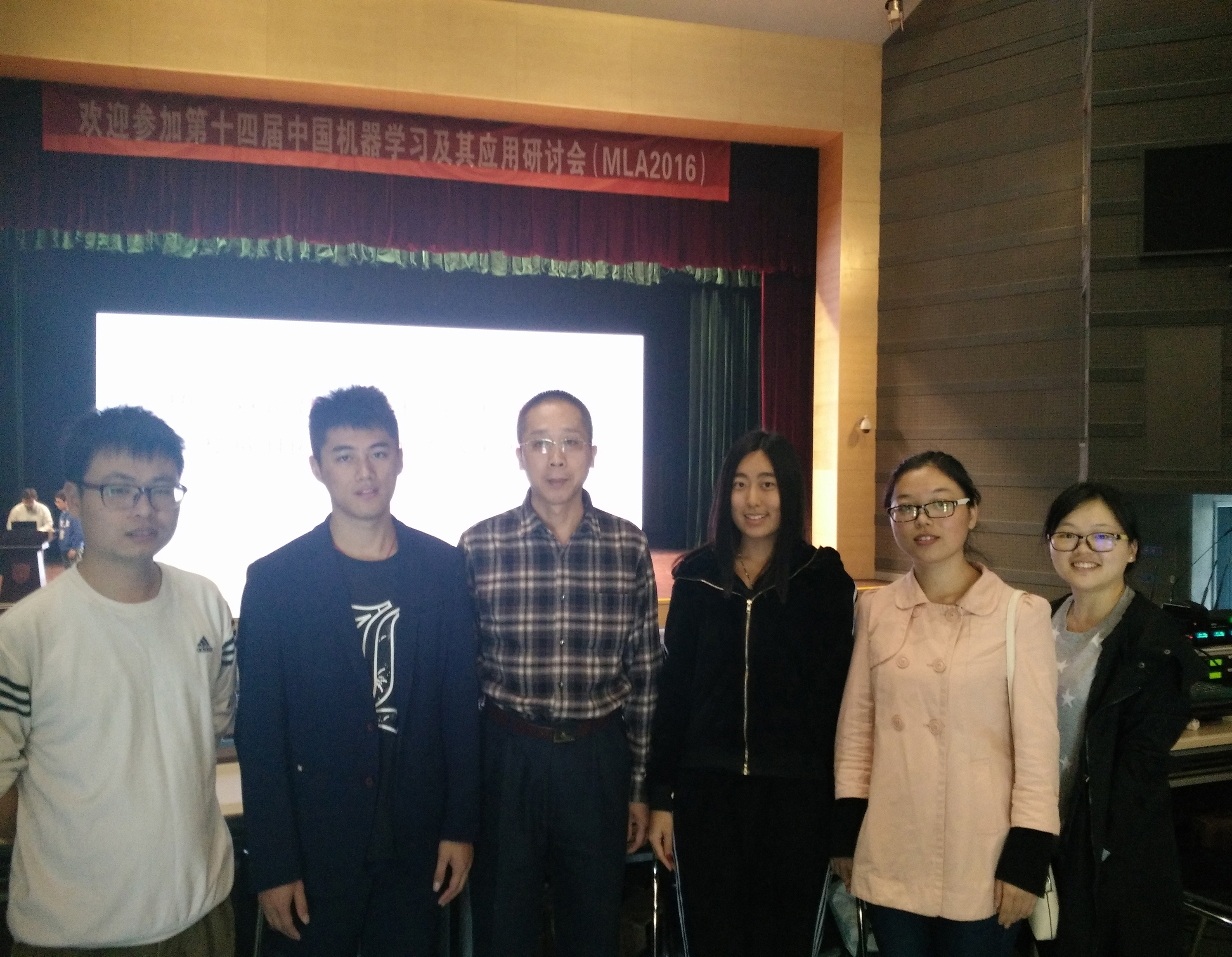2016年11月4日-6日南京大学举办的为期三天的“第十四届中国机器学习及其应用研讨会(MLA)”,研讨会邀请国内从事机器学习及相关领域研究的著名专家,以及现居国外、国际上有影响的华人学者共60余位与会进行学术交流,另有全国各地自发参会的教师、研究生1500余人。本实验室杨文元副教授带领五名实验室学生参加了本次研讨会,通过参加本次研讨会师生均获益匪浅。