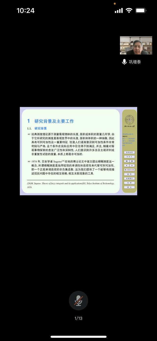 应数学与统计学院与粒计算重点实验室邀请,5月1日早上,西北师范大学巩增泰教授在腾讯会议作了题为《基于sigma-lambda律非可加测度的OWA算子递归集成及其集成器设计》的报告。相关师生聆听了此次报告,报告由李进金老师主持。