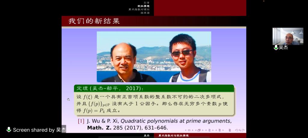 应数学与统计学院与粒计算重点实验室邀请,8月4日早上,法国国家科学研究中心(CNRS)特级研究员吴杰在腾讯会议作了题为《算术指数对与欧拉猜想》的报告。相关师生聆听了此次报告,报告由曹炜老师主持。