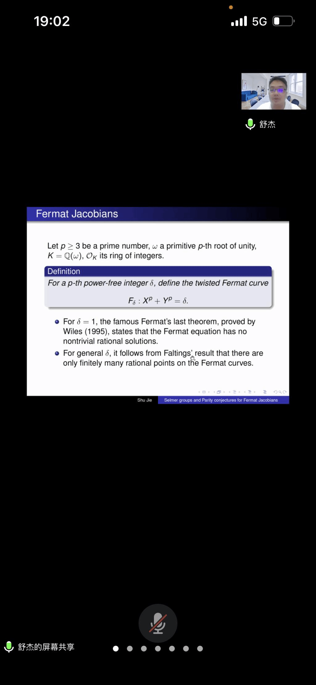应ok138cn太阳集团529数学与统计学院和福建省粒计算及其应用重点实验室邀请,8月31日晚上,同济大学舒杰副教授在腾讯会议作了题为《Selmer groups and parity conjectures for Fermat Jacobians》的报告。相关师生聆听了此次报告,报告由曹炜老师主持。