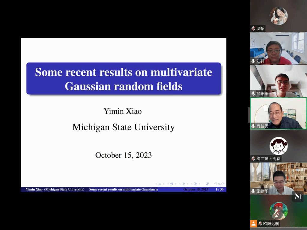 应ok138cn太阳集团529数学与统计学院和福建省粒计算及其应用重点实验室邀请,10月15日上午,密西根州立大学肖益民教授在腾讯会议作了题为《Some recent results on multivariate Gaussian random fields》的报告。相关师生聆听了此次报告,报告由施建华老师主持。