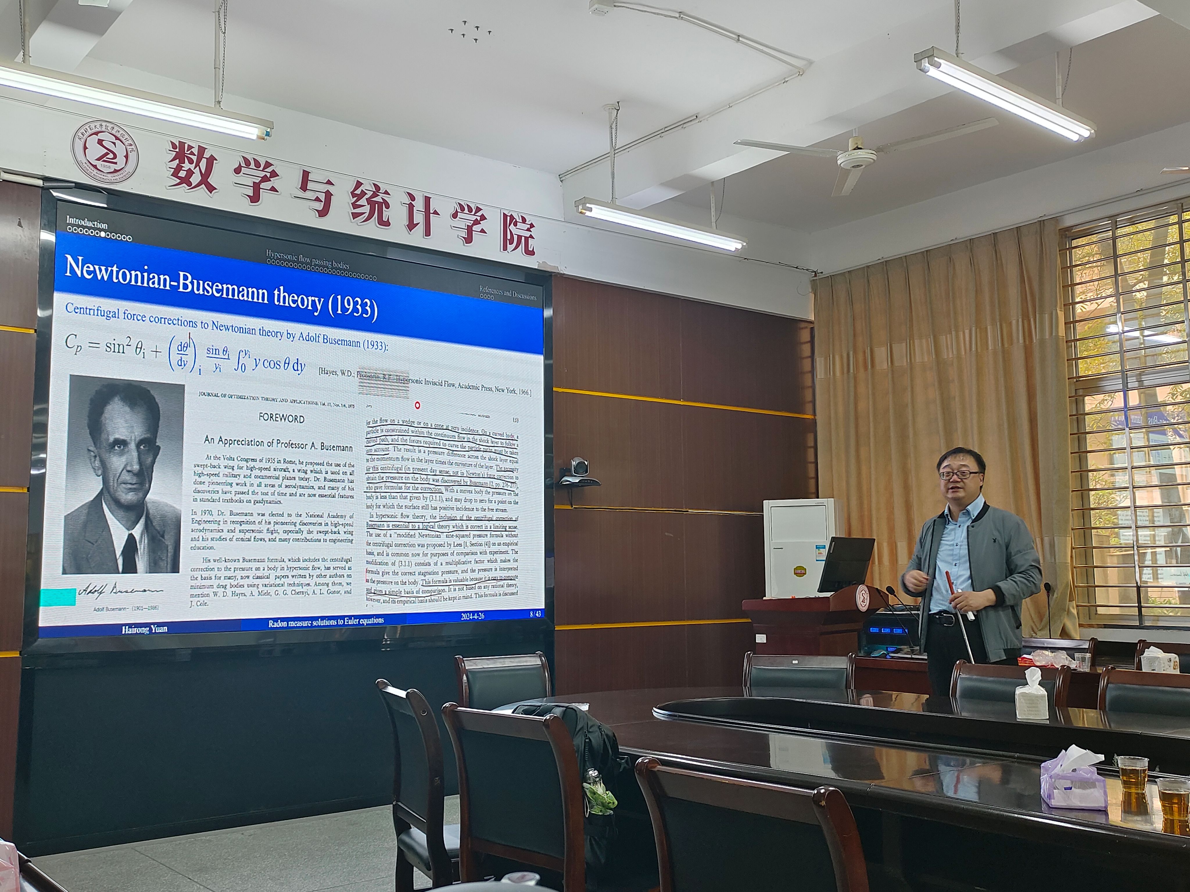 应ok138cn太阳集团529数学与统计学院和福建省粒计算及其应用重点实验室邀请,4月26日早上,华东师范大学袁海荣教授在砺志楼114作了题为《可压缩欧拉方程组的Radon 测度解及其在高超声气动力学中的应用》的报告。相关师生聆听了此次报告,报告由林国平老师主持。