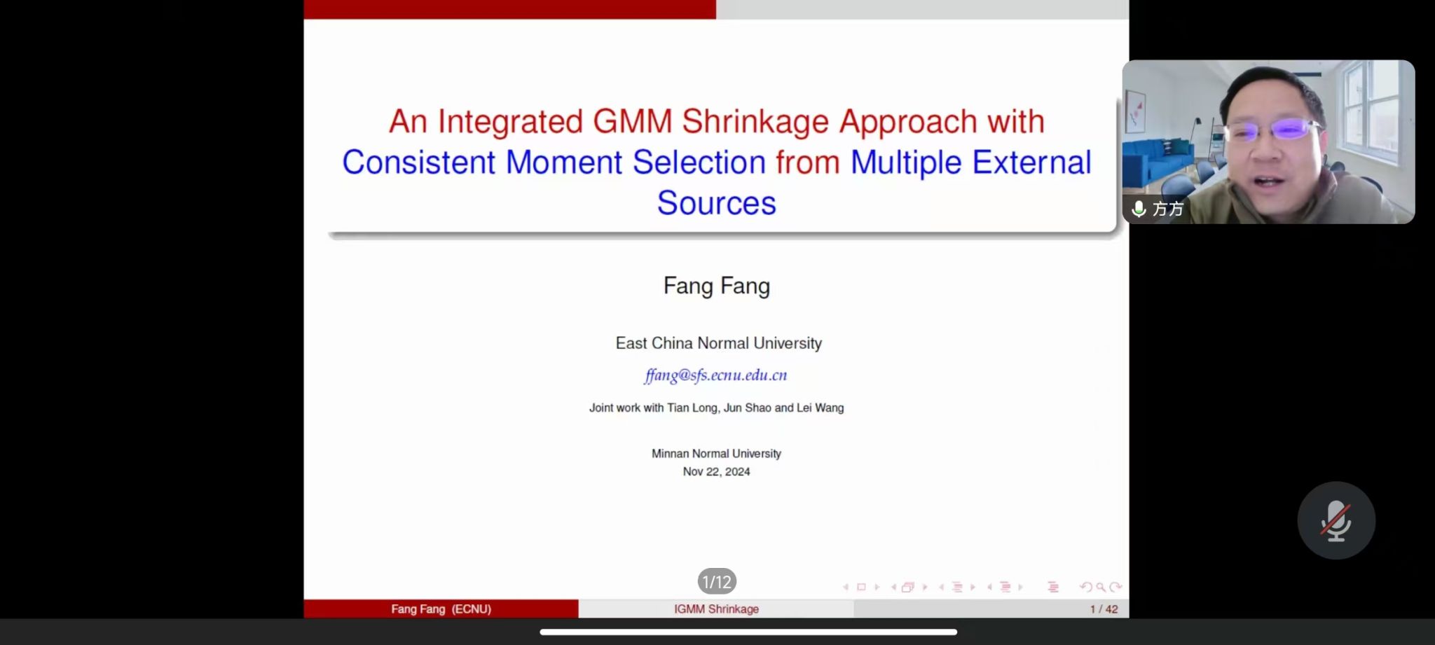 应ok138cn太阳集团529数学与统计学院和福建省粒计算及其应用重点实验室邀请,11月22日下午,华东师范大学方方教授在腾讯会议作了题为《An Integrated GMM Shrinkage Approach with Consistent Moment Selection from Multiple External Sources》的报告。相关师生聆听了此次报告,报告由施建华老师主持。