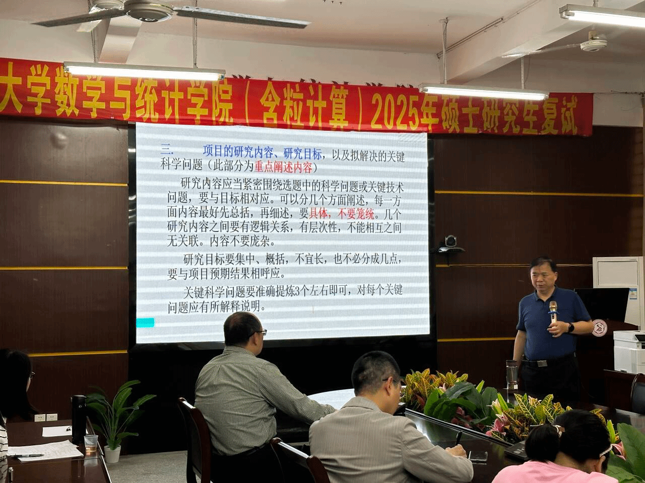 讲座中,刘三阳教授主要根据国家自然科学基金申请书的主要栏目和个人申请及评审基金项目的经历,为各位师生逐条进行分析解读。在解读和分享的过程中,刘教授始终保持理论讲解与实践指导相结合的风格,既有对基金政策导向的宏观把握,也有对具体撰写规范的细节指导。针对师生们普遍关心的“学科项目设计”等问题,他结合评审实际提出针对性建议。讲座尾声,刘教授总结提炼出十条具有实操性的申请建议,涵盖项目研究内容、研究目标、研究方法、技术路线、实验手段等关键环节。