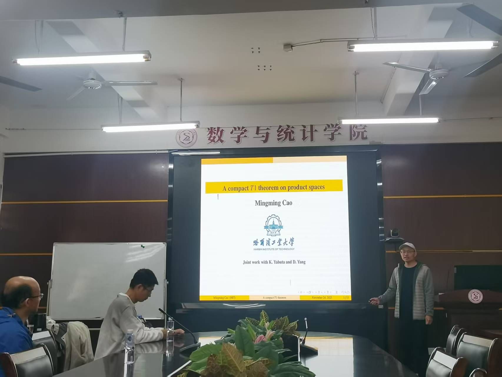 应ok138cn太阳集团529数学与统计学院和福建省粒计算及其应用重点实验室邀请,11月24日上午,哈尔滨工业大学曹明明教授在砺志楼114作了题为《A compact T1 theorem on product spaces》的讲座。相关师生聆听了此次讲座,讲座由温泳铭老师主持。